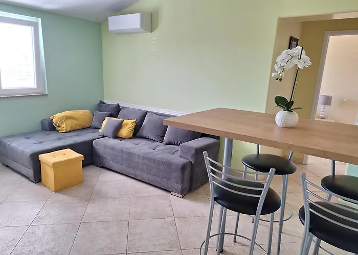Roma Tapınağı'dan 2,5 km mesafede konumlanan Vesna dairesinin golf kursları, veranda, bahçe gibi birçok olanağı vardır. Mevsimlik açık havuza sahip Apartments Vesna Zaton Parish Kilisesi yakınında bulunmaktadır.